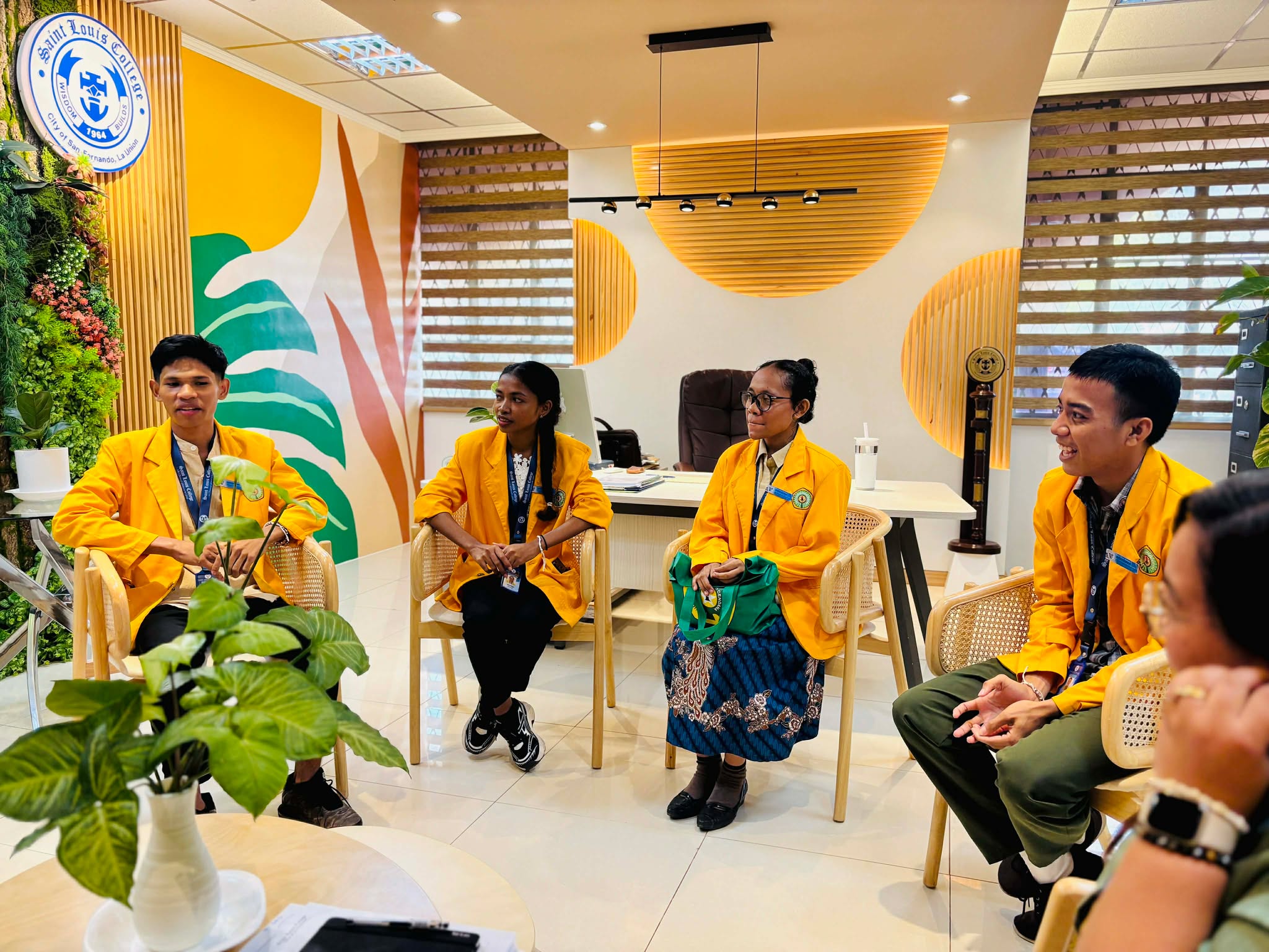 The student delegates from Universitas Nusa Cendana, Indonesia, paid a courtesy visit to the College President, Rev. Fr. Roderick G. Villamar, CICM, PhD, following the successful completion of their month-long internship at Saint Louis College of San Fernando, La Union (SLC-SFLU) under the SEA Teacher Program.