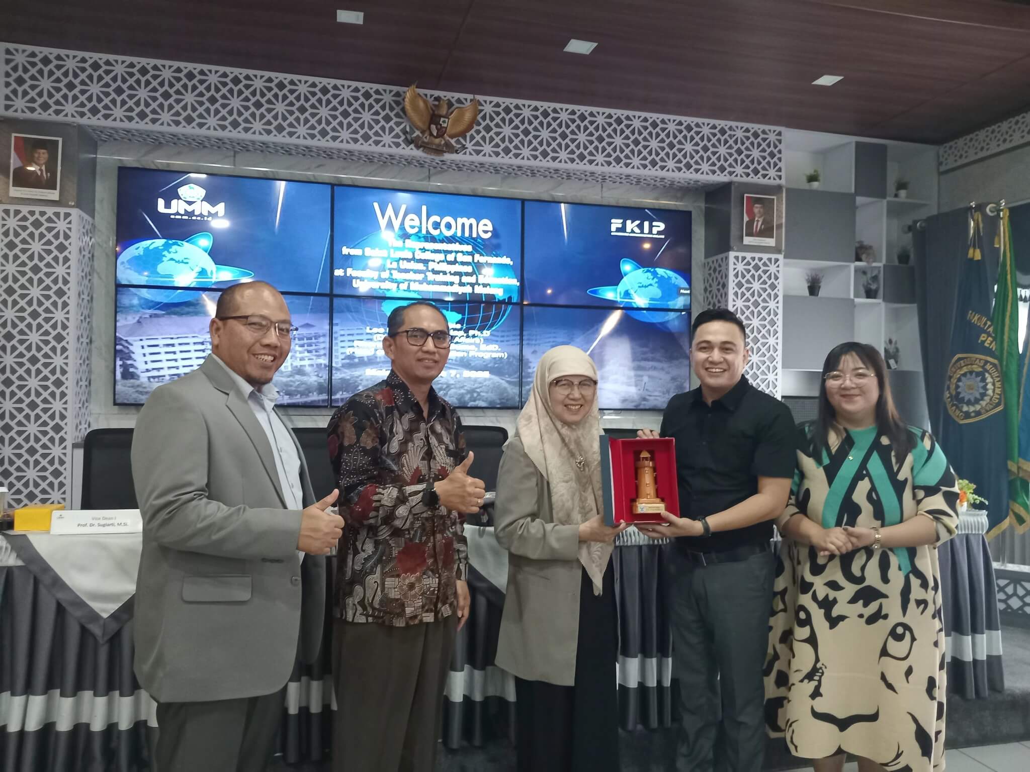 Representing SLC-SFLU were Dr. Leo Esteene L. Galap, Director of Global Affairs, and Dr. Rhonalie B. Apilado-Dumo, Program Head of Teacher Education. They were received with warm hospitality by UMM’s Vice Rector, Muhamad Salis Yuniardi, M.Psi., PhD, together with Vice Deans Bayu Hendro Wicaksono, M.Ed., PhD, and Prof. Dr. Sugiarti, M.Si. Also in attendance were the heads of the various education program specializations of the university.