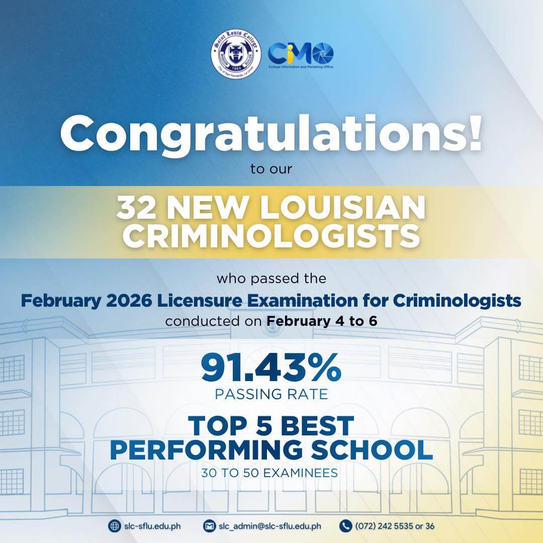 SLC President Rev. Fr. Roderick G. Villamar, CICM, Ph.D and the whole Louisian community congratulate our successful examinees.